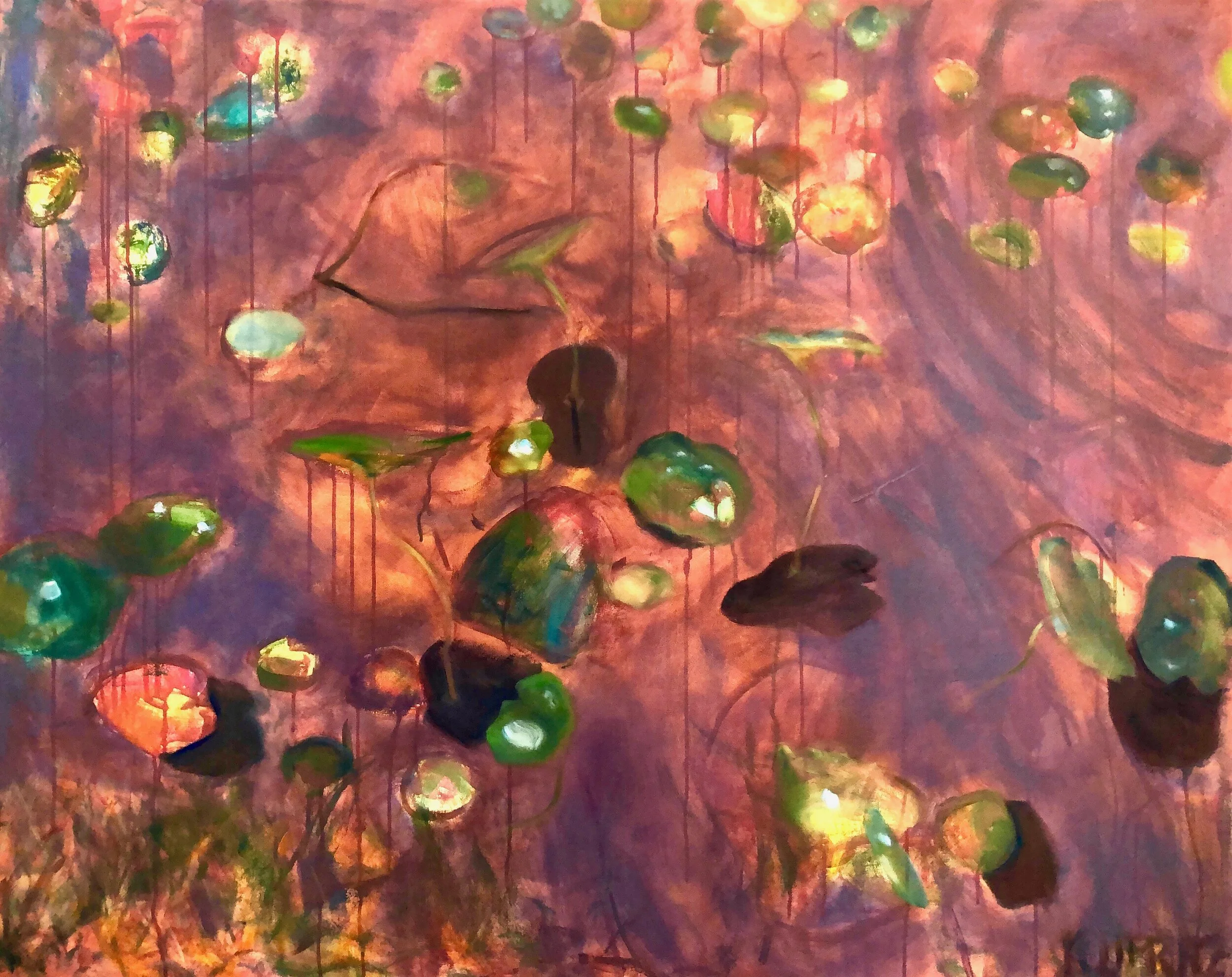 Here’s a riddle: What do reflections on the surface of a pond, a pair of water birds obscured by murky dawn and an imaginary cherry orchard have in common? Answer: they’re all starting points for art as personal stage set. I paint objects, places and the occasional creature not to “capture” or document them, but instead as a future catalyst of spirit, thought, energy and action. Pure abstraction can work much the same way.